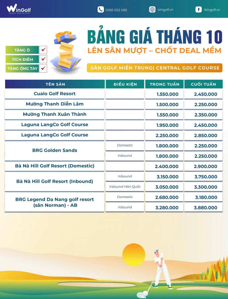 Bảng Giá Sân Golf Tháng 10 | Ưu Đãi Sân Golf Cùng Wingolf